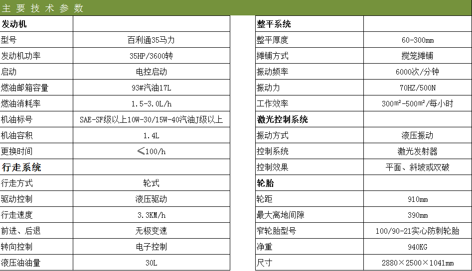 通過液壓驅(qū)動車輪行走系統(tǒng),使得輪子可以獨立運動,與整平頭互不影響,使用電控操作輪子的前進、后退、轉(zhuǎn)向及行進速度,移動非常方便。