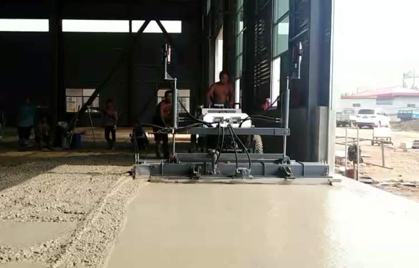 由刮板、振動器、振動板、絞龍等部件組成,將攪拌、找平、震平、振搗,等多道工序整合到一起,由機器一次性完成。提高效率,節(jié)省人工。