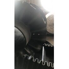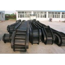 而使用比較多的就是那種帶擋邊帶隔板的輸送帶,也就是大傾角輸送帶。在這個輸送帶當(dāng)中隔板的作用其實有兩個:一個是起到提升的作用,隔板是在擋邊中間,物料就是由給料機落入到各個擋邊中央,由輸送機提升到指定高度。而另一個作用就是料斗的作用,每條大傾角擋邊輸送帶由若干個隔板組成。每個隔板都根據(jù)客戶的需求設(shè)定了相等的間距,形成了一個小小的儲物室。