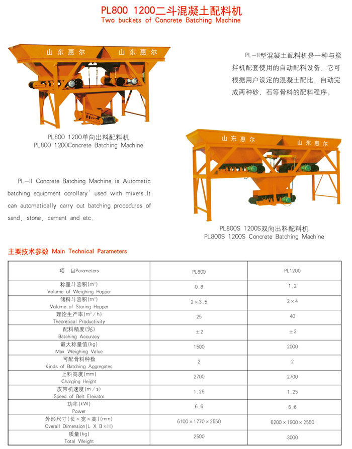 歸屬行業(yè):PL1200二斗混凝土配料機(jī)
