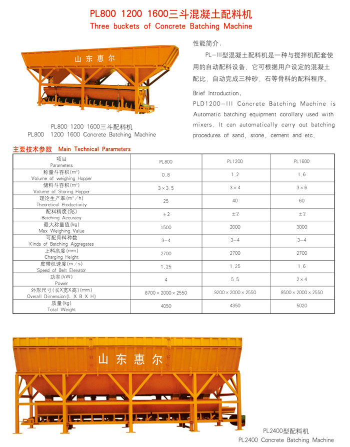 歸屬行業(yè):PL1200三斗混凝土配料機