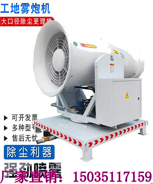 霧炮機功力強、射程遠、覆蓋范圍廣、可以實現(xiàn)精量噴霧;工作效率高、噴霧速度快;對容易引起塵埃的堆場噴水除塵時,噴出的霧粒細小、與飄起的塵埃接觸時,形成一 種潮濕霧狀體,能快速將塵埃抑制降沉;配套動力靈活,既可用三相380V的市電,也可配套柴油發(fā)電機組供電;可固定安裝在混凝土澆筑的平臺上,也可配套柴 油發(fā)電機組供電安裝在運輸車輛上;操作靈活,使用安全可靠,遙控和人工控制操作,可隨意控制調(diào)節(jié)水平旋轉(zhuǎn)噴霧角度;耗水量其它抑塵噴灑設備可節(jié)約 ~(噴槍、灑水機車),且水霧覆蓋粉塵面積遠遠大于其它抑塵噴灑設備。