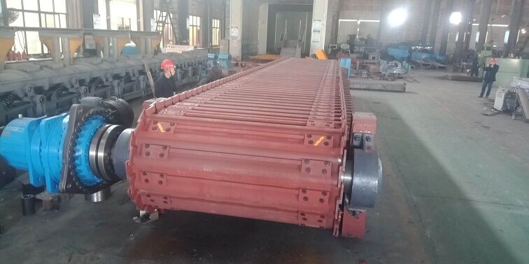 鏈板全部采用16Mn鋼板制作,厚度16-25mm。采用單圓弧搭接結(jié)構(gòu)形式,工作時始終處于相互搭接狀態(tài),抗沖擊、耐磨損、鏈板之間不漏料,安全可靠。每個鏈板兩側(cè)邊采用導向板定位,