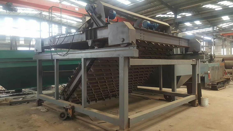 由操作工按下輸送按鈕啟動(dòng)鏈板輸送機(jī)將料袋輸送出包裝位置,待叉車來(lái)把托盤運(yùn)走。
