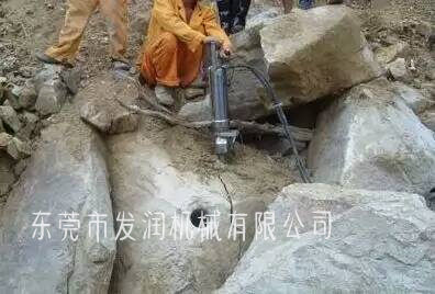 液壓劈裂機(jī)以液壓油為驅(qū)動力,并巧妙地應(yīng)用斜契原理,使劈裂器頭破拆力達(dá)到幾百噸,甚至上千噸,這樣就可以在幾秒鐘時(shí)間內(nèi)把上百噸的巨石輕而易舉地開裂開來,從而使堅(jiān)硬而巨大的巖石從山體中分離。
