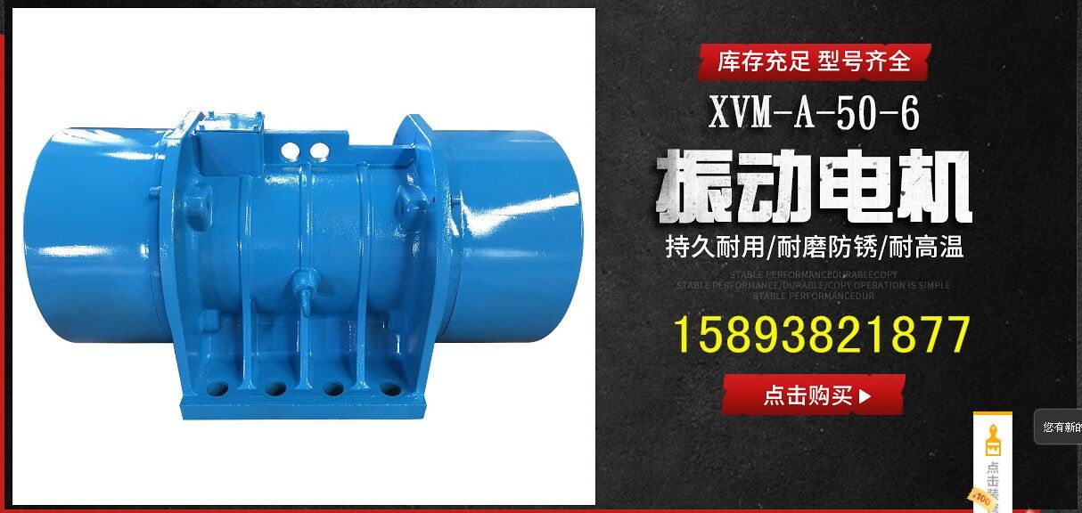 XVM-A系列振動(dòng)源三相異步電動(dòng)機(jī)集動(dòng)力源和振動(dòng)源為一體,是一種高效節(jié)能的通用性激振源,體積小,激振力大,結(jié)構(gòu)可靠,使用維護(hù)方便,簡稱振動(dòng)電機(jī)。其它名稱:,震打電機(jī)。本系列產(chǎn)品廣泛應(yīng)用于礦山、煤炭、電力、化工、糧食加工、冶金、鑄造、輕工、醫(yī)藥等行業(yè)。是實(shí)現(xiàn)粉狀、粒狀、塊狀等散體料機(jī)械化篩分、輸送、破碎、充填、防堵塞的理想激振源。本機(jī)可單機(jī)使用,也可多機(jī)組合使用。 1、振動(dòng)電機(jī)使用條件 本系列振動(dòng)電機(jī)滿足下列條件時(shí),能連續(xù)輸出額定激振力。 (1) 振動(dòng)加速度:不超過7g(g:重力加速度) (2) 環(huán)境溫度:不超過40℃ (3) 海拔:不超過1000m (4) 電源頻率:50HZ (5) 電壓:380v (6) 溫升:小于80K(電阻法) 2、振動(dòng)電機(jī)型號(hào)說明 (1) XVM-A系列產(chǎn)品型號(hào)由三部分組成(如下示例) XVM-A 5-4 XVM-A---振動(dòng)電機(jī) 5---*大激振力(千牛頓) 4---極數(shù) (2)XVML系列表示立式安裝振動(dòng)電機(jī)。