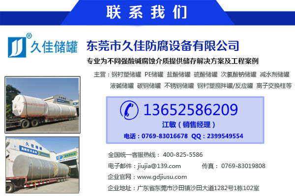 3、久佳儲罐的防腐原料耐化學性能非常優(yōu)異,除少數(shù)溶液可以溶脹它外,幾乎可以耐大部分物質(zhì)溶液,精確水位控制