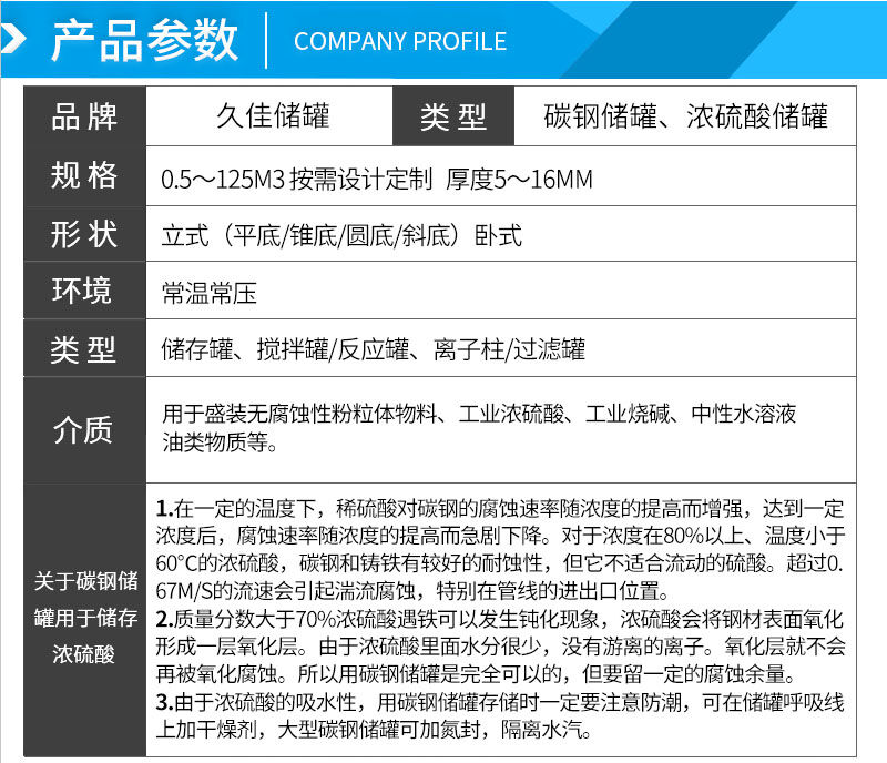 產品:碳鋼儲罐、濃硫酸儲罐