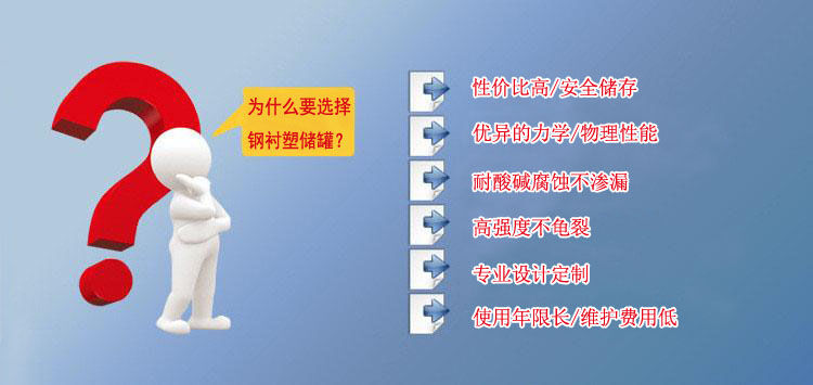 鋼襯塑儲(chǔ)罐也叫龜甲襯里儲(chǔ)罐,是鋼塑復(fù)合系列產(chǎn)品的精華。它采用特殊滾塑成型工藝。是將鋼網(wǎng)(龜甲)焊接于鋼體表面,以純聚乙烯為原料,采用滾塑工藝將鋼板、鋼網(wǎng)(龜甲)與聚乙烯有機(jī)結(jié)合成一體。聚乙烯牢固沾鋼體表面。
