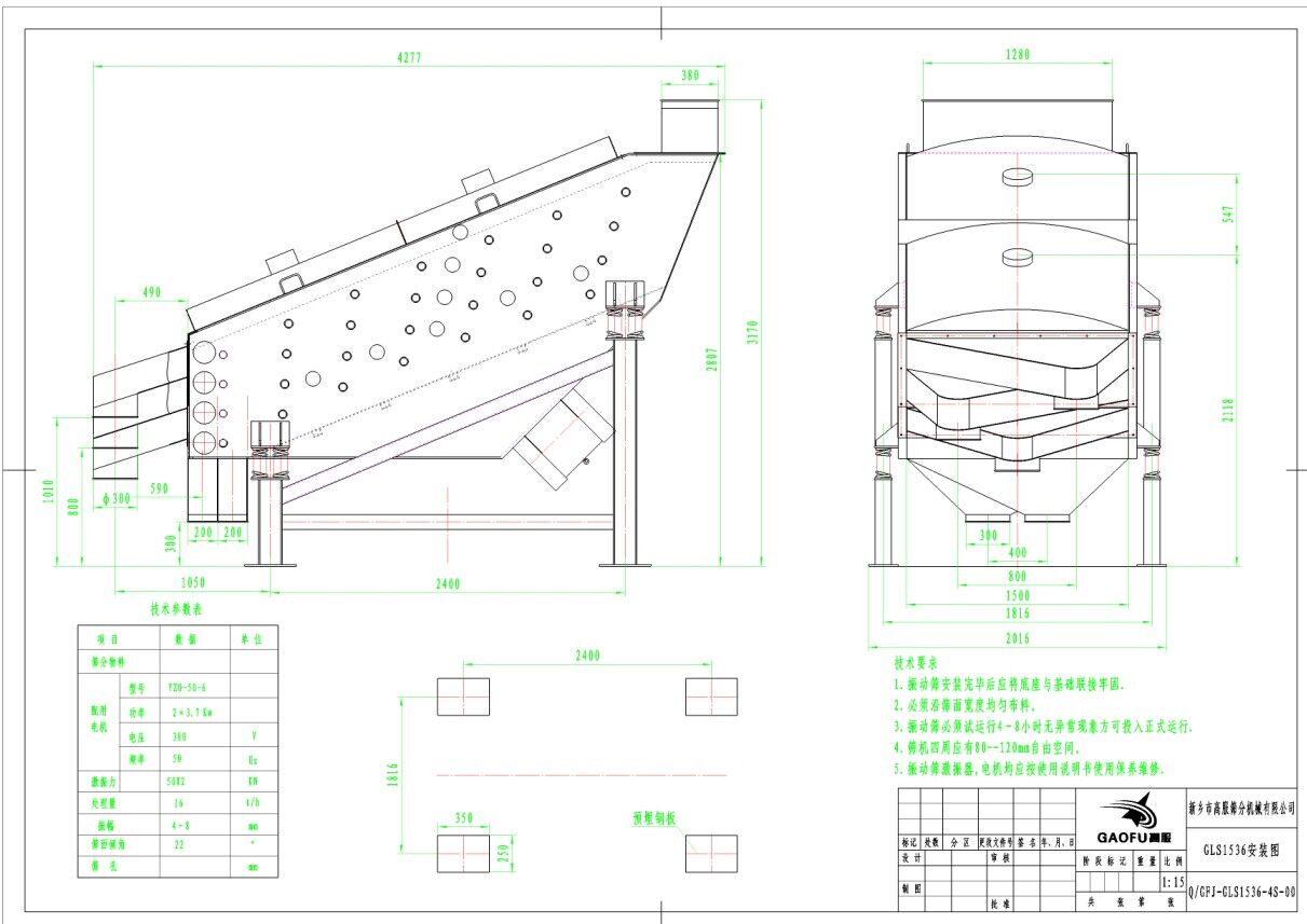 1、 GLS概率篩,計有(14)個定型規(guī)格并有振動電機和激振器兩種振源形式,適用不同作業(yè)環(huán)境需求,選用時請確定電壓制式及有無防爆要求;