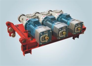 傳動(dòng)機(jī)構(gòu)由電動(dòng)機(jī)、電磁制動(dòng)器、彈性聯(lián)軸器、蝸輪蝸桿減速器及傳動(dòng)齒輪等組成。傳動(dòng)機(jī)構(gòu)在吊籠上通過齒輪與
