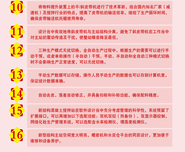 6、新型的攪拌站控制系統(tǒng)與機(jī)械結(jié)構(gòu)實(shí)現(xiàn)完美組合,保證整套設(shè)備可靠的運(yùn)轉(zhuǎn),混凝土生產(chǎn)效率高。