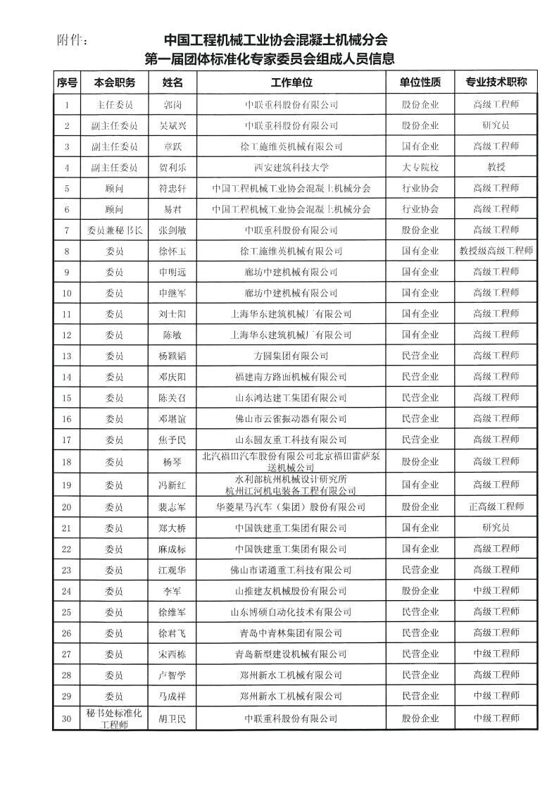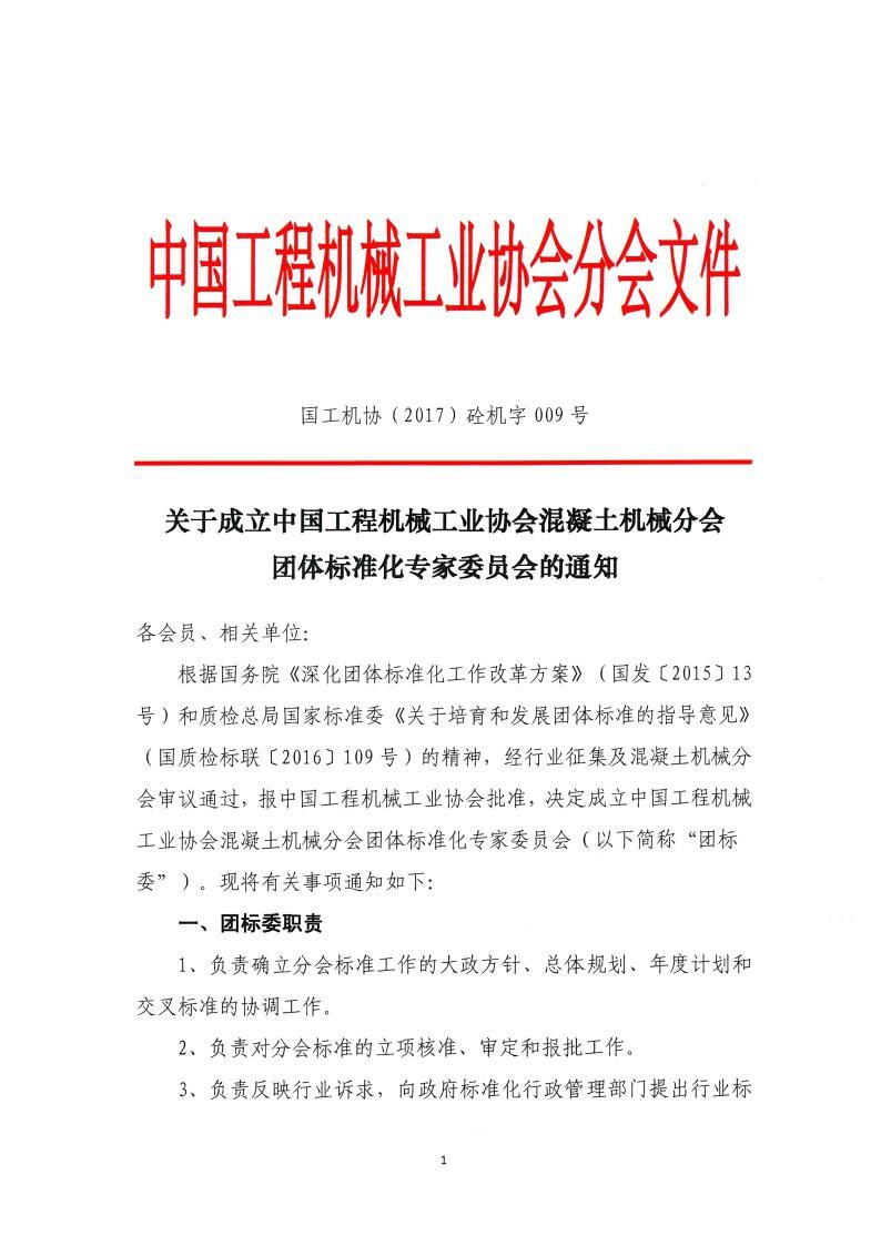 《關(guān)于成立中國工程機(jī)械工業(yè)協(xié)會(huì)混凝土機(jī)械分會(huì)團(tuán)體標(biāo)準(zhǔn)化專家委員會(huì)的通知》