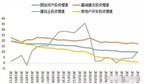 2015年,全國(guó)固定資產(chǎn)投資(不含農(nóng)戶)551590億元,比上年名義增長(zhǎng)10%(扣除價(jià)格因素,實(shí)際增長(zhǎng)12%),增速比1-11月份回落0.2個(gè)百分點(diǎn)。從環(huán)比速度看,12月份固定資產(chǎn)投資(不含農(nóng)戶)增長(zhǎng)0.68%。建筑業(yè)固定資產(chǎn)投資總額4895億元,同比增長(zhǎng)10.2%,增速較1-11月提高了5.4個(gè)百分點(diǎn)。今年以來(lái),制造業(yè)投資大勢(shì)已去,房地產(chǎn)投資降至歷史低點(diǎn)且尚未見底。由于基建投資具有逆周期特性且保持快速增長(zhǎng),穩(wěn)增長(zhǎng)寄希望于基建投資托底。發(fā)改委更是密集批復(fù)基建項(xiàng)目助力穩(wěn)增長(zhǎng)?;A(chǔ)設(shè)施投資(不含電力)101271億元,比上年增長(zhǎng)17.2%,增速比1-11月份回落1個(gè)百分點(diǎn)。其中,水利管理業(yè)投資增長(zhǎng)21%,增速回落2.3個(gè)百分點(diǎn);公共設(shè)施管理業(yè)投資增長(zhǎng)20.2%,增速回落0.3個(gè)百分點(diǎn);道路運(yùn)輸業(yè)投資增長(zhǎng)16.7%,增速回落0.8個(gè)百分點(diǎn);鐵路運(yùn)輸業(yè)投資增長(zhǎng)0.6%,增速回落0.2個(gè)百分點(diǎn)。